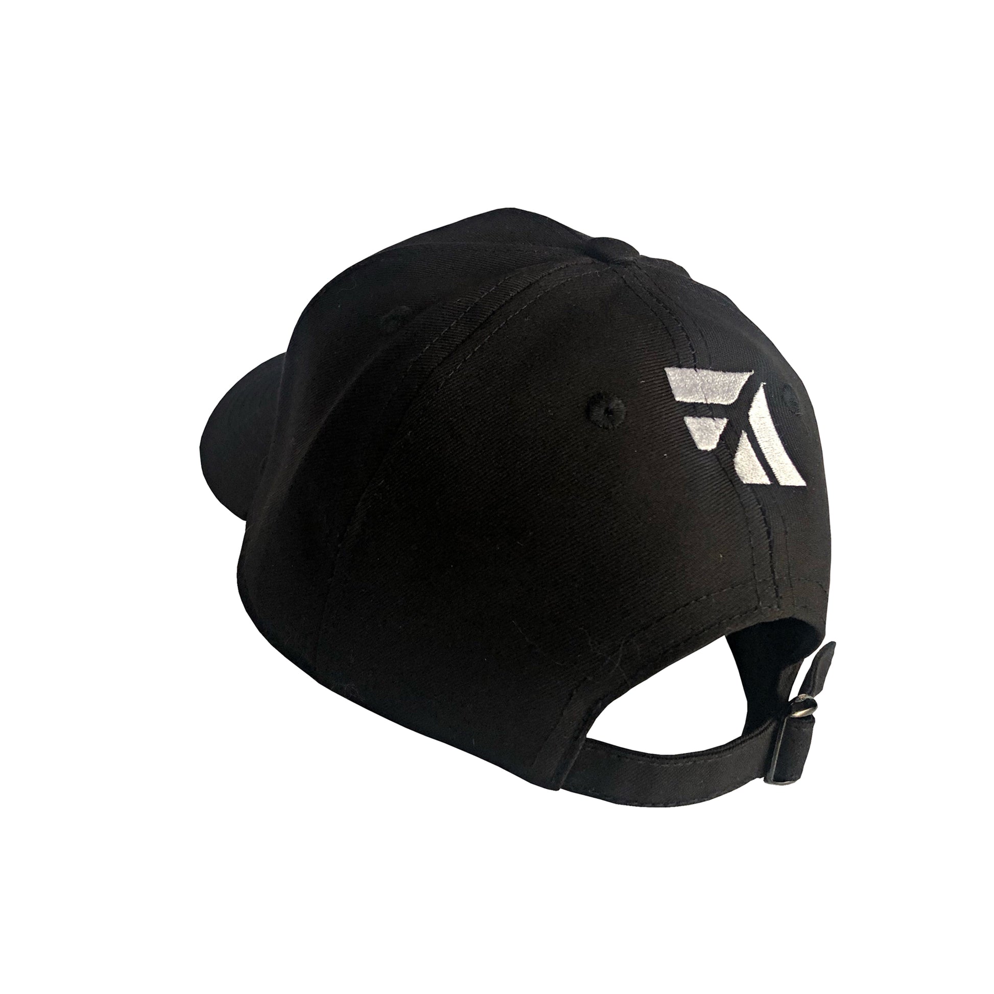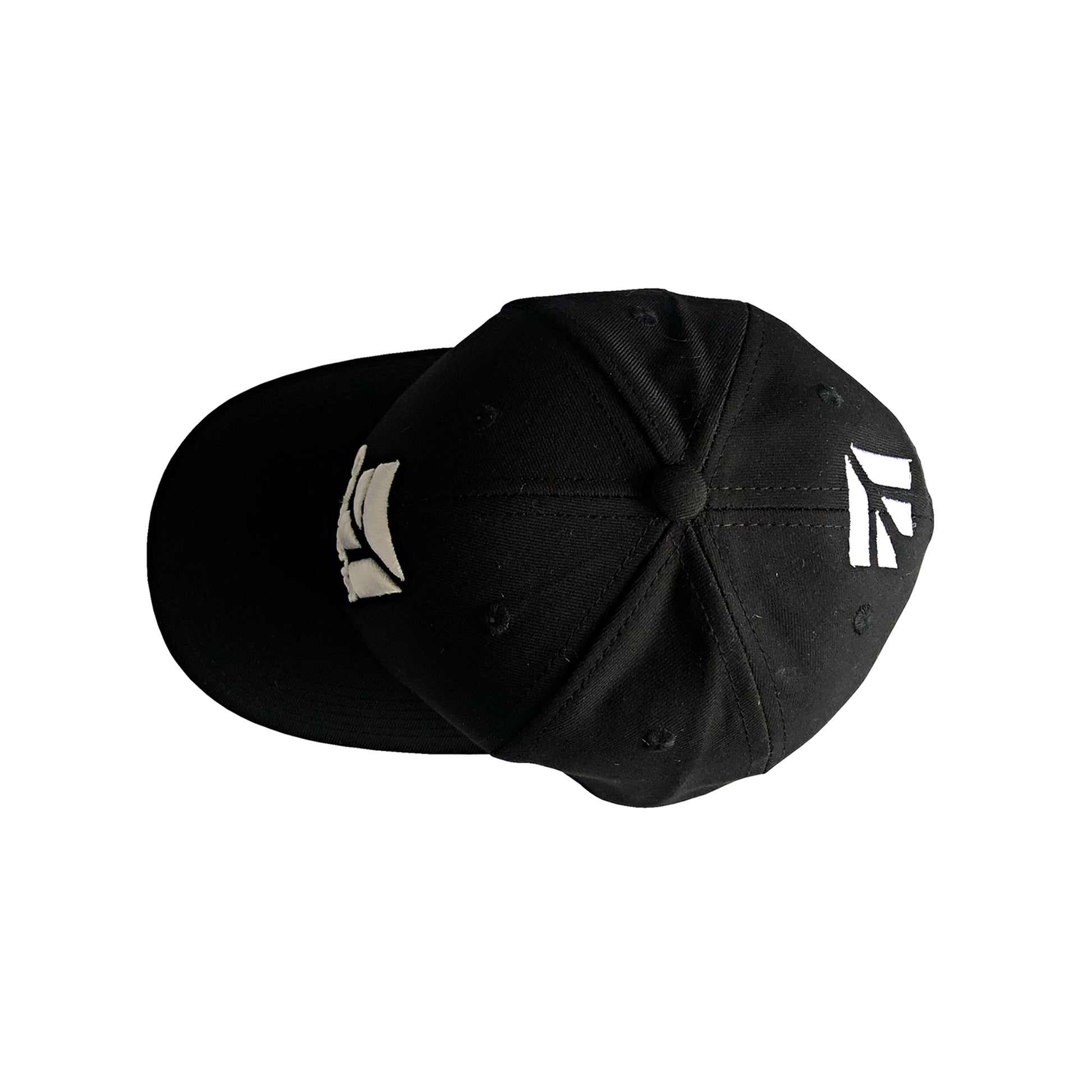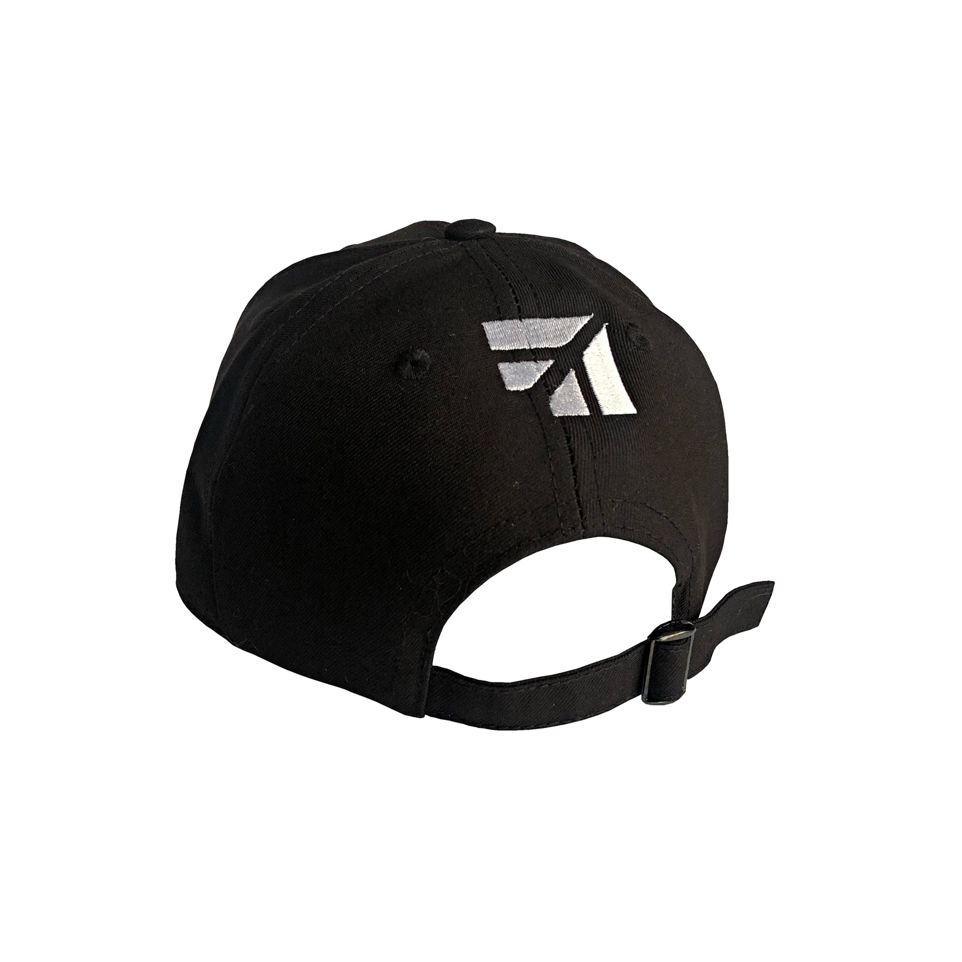 Gorra de color negra, con logos en alto relieve y gancho regulable