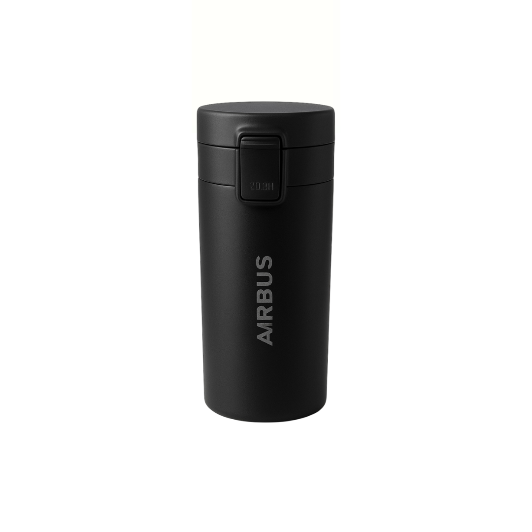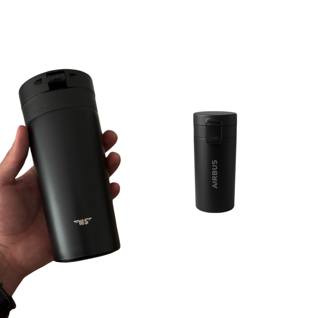 Mantiene tu café a la temperatura perfecta durante todo el vuelo, gracias a su sellado térmico y tapa con seguro anti derrames.